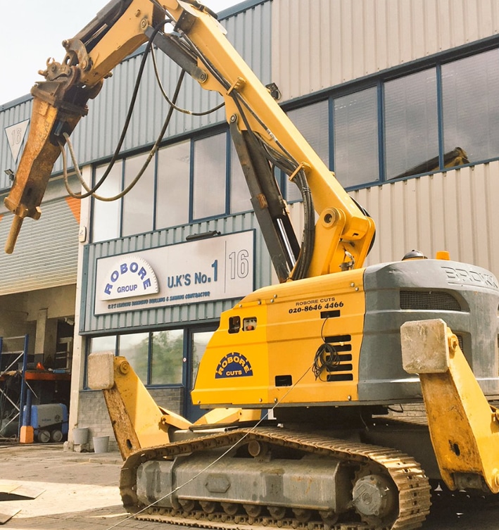 Robore Cuts were pioneers of the use of robotic demolition machines in the UK construction industry. This image of a Brokk 250 – one of the first machines in the UK, was taken at the old Westgate Shopping Centre back in the 1990’s where Robore completed a full structural alteration package.