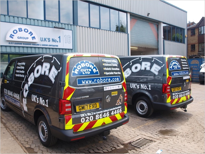 This van pictured was a Toyota Hi-Ace back in the late 1980’s and was Robore Cuts first ever company vehicle, the fleet has grown to over 70 vehicles, all running in line with the new environmental friendly Euro 5 and Euro 6 engine.